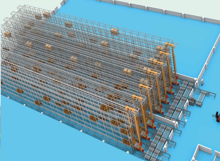 堆垛機是高架立體庫存取單元貨物的專用起重設備,立體倉庫高度可達 45 米左右,堆垛機在貨架之間的巷道內運行